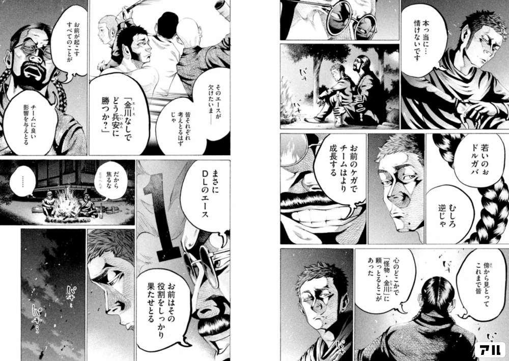 本っ当に 情けないです 若いのぉ ドルガバ むしろ逆じゃ お前のケガで チームはより成長する 傍から見とって これまで皆 心のどこかで 怪物 金川 に頼っとるとこがあった そのエースが欠けたいまー 皆それぞれ考えとるはずじゃ 金川なしで どう平安に勝つか
