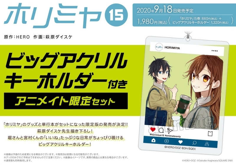 Gファンタジー On Twitter ホリミヤ 巻アニメイト限定版が9月18日に発売決定 堀さんと宮村くんの いいね たっぷりな日常がちょっぴり覗ける ビッグアクリルキーホルダー 絶対にgetしたい方は 8月18日まで のご予約をお勧めします 山きょん