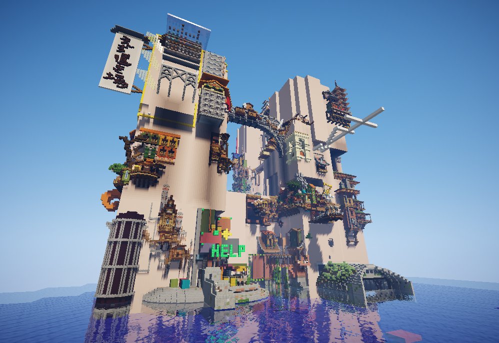 現実世界では明らかに違法 でもマイクラでは空想の限りを尽くして情報量と密度ハンパない素敵建物が作れるぜ Minecraft違法建築イベ Togetter