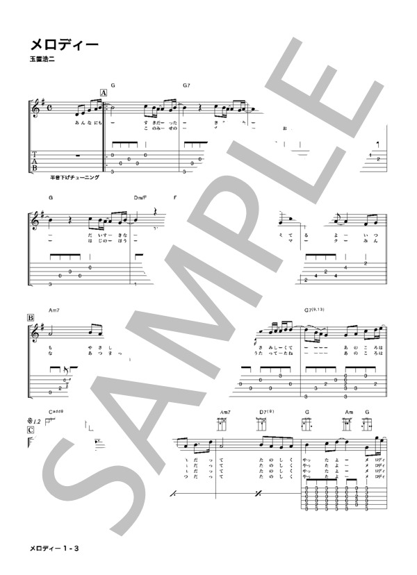 玉置浩二 メロディー ギター弾き語り 楽譜 スコア