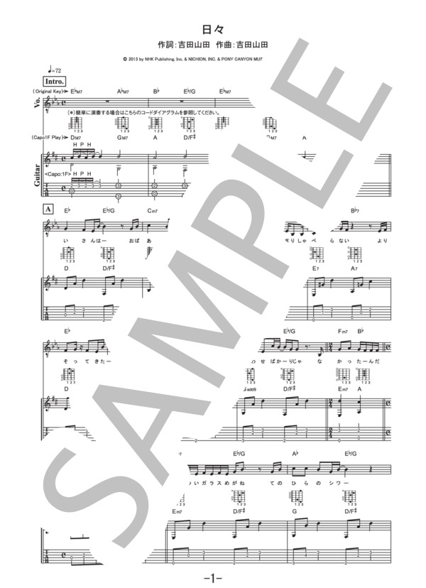 楽譜 日々 吉田山田 ギター ヴォーカル譜 吉田山田 ギター弾き語り 中級 Piascore 楽譜ストア