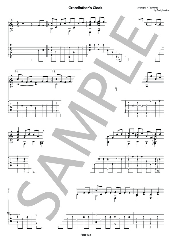 楽譜 大きな古時計 ギター タブ譜 ヘンリー クレイ ワーク ギターソロ 中級 Piascore 楽譜ストア