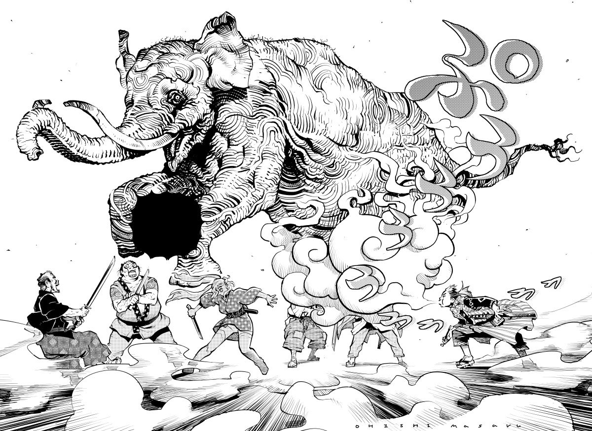 大石まさる Sur Twitter 大江戸スモーキングマン より ペンの技法で色々やってる4枚 フランクリン ブースやセルジオ トッピが好きだとモロバレでしょう