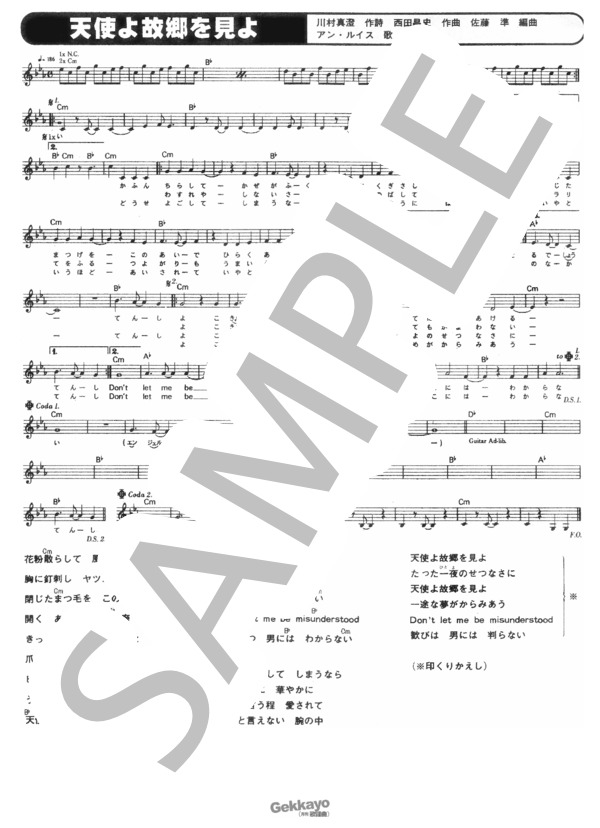 楽譜 アン ルイス 天使よ故郷を見よ メロディ譜 アン ルイス メロディ その他 Piascore 楽譜ストア