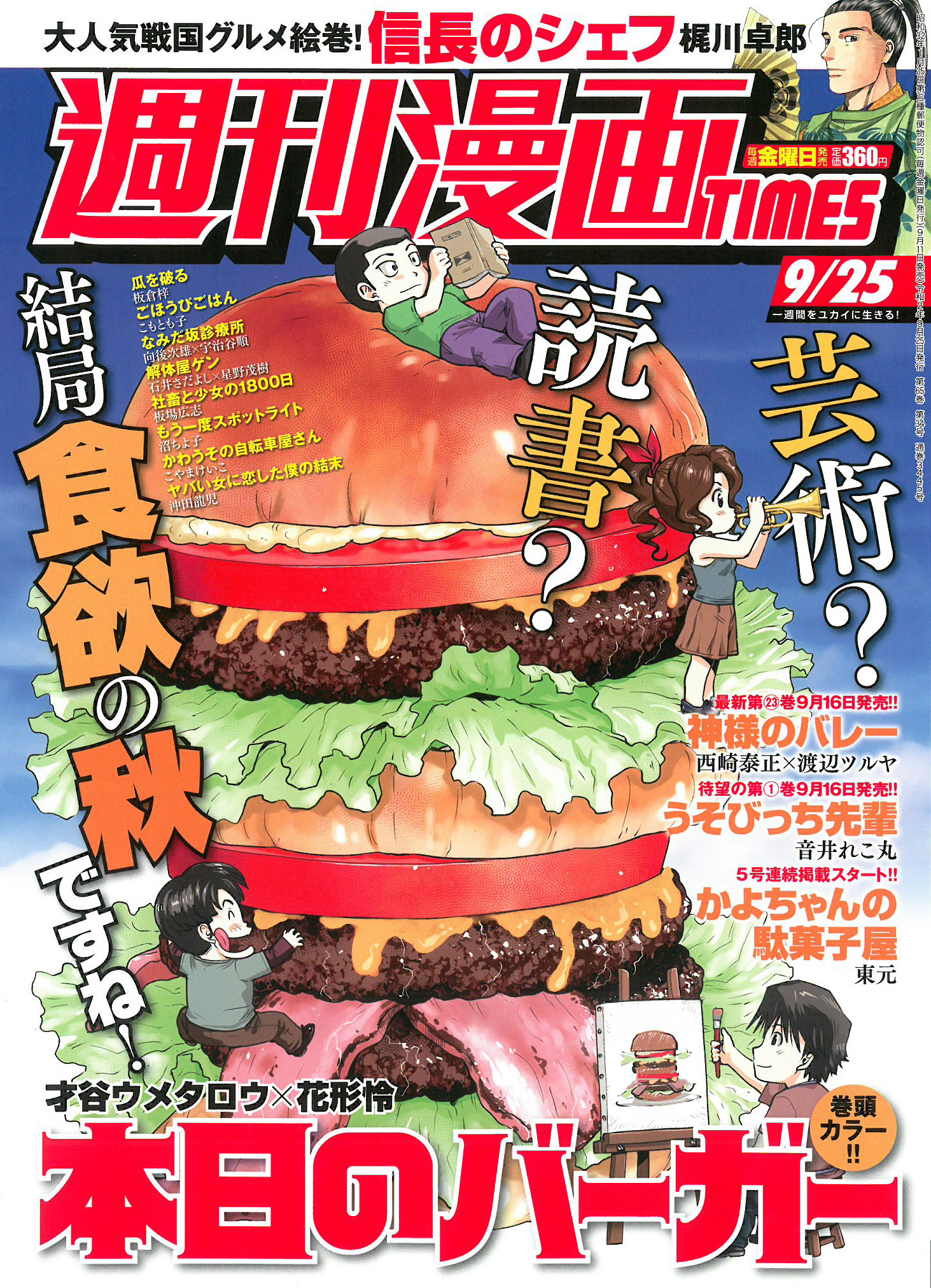 Uzivatel 週刊漫画times 公式 Na Twitteru 週刊漫画times 9 25号 は 本日9 11発売 表紙イラスト 巻頭カラーは 本日のバーガー 才谷ウメタロウ 花形怜 です ハンバーガーと共に 秋にぴったりの活動をしている神宮寺たちが表紙です