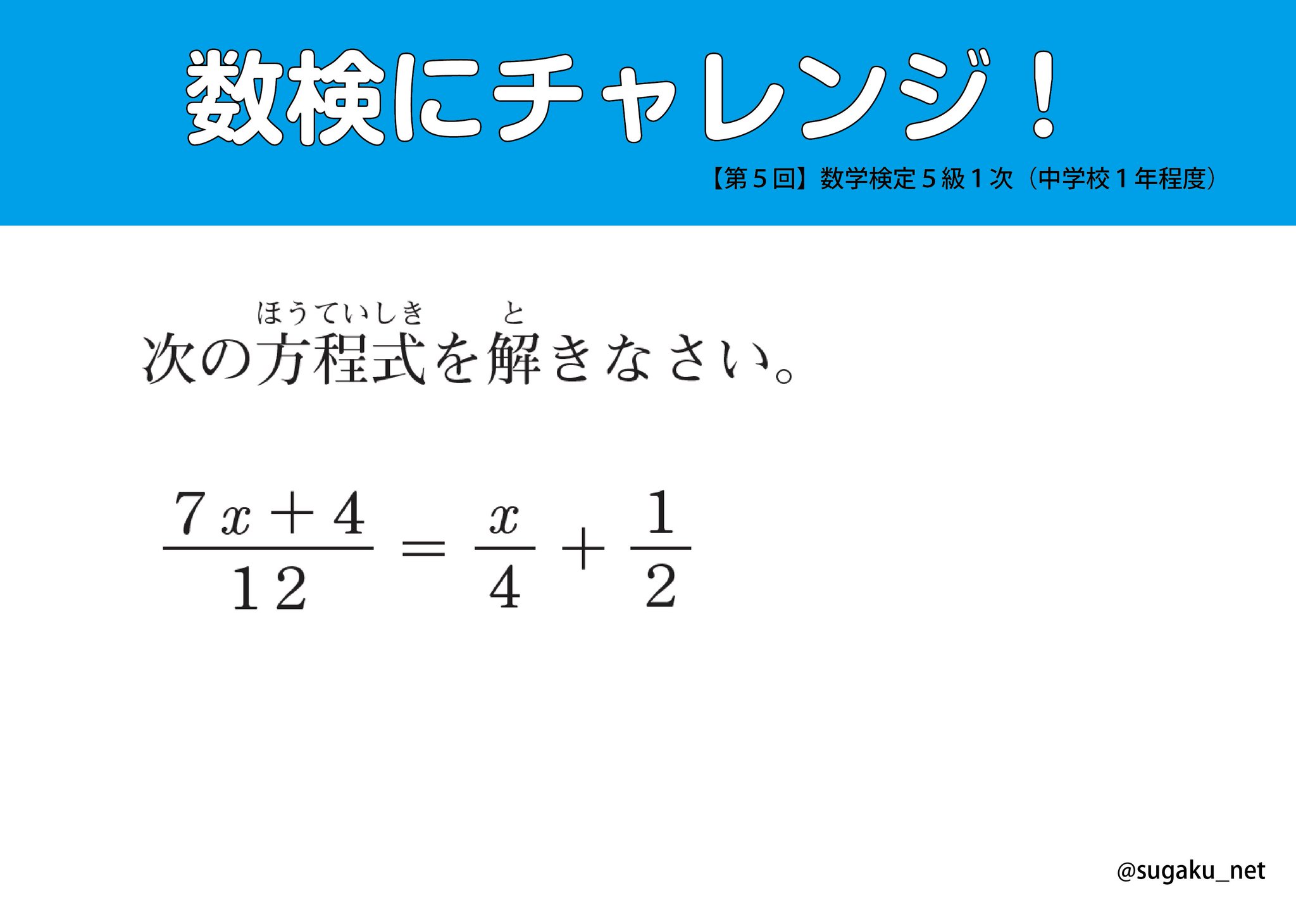 数検にチャレンジ 昨日7月14日 土 に出題した数学検定5級 みなさんは解けましたか 実用数学技能検定 数学検定 算数検定 Facebook