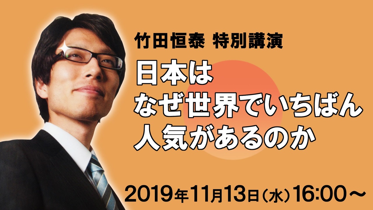 無料 竹田恒泰 特別講演 日本はなぜ世界でいちばん人気があるのか 前編 脅迫により中止に追い込まれた講演をニコニコにて特別放送 竹田恒泰チャンネル特番 ニコニコ動画